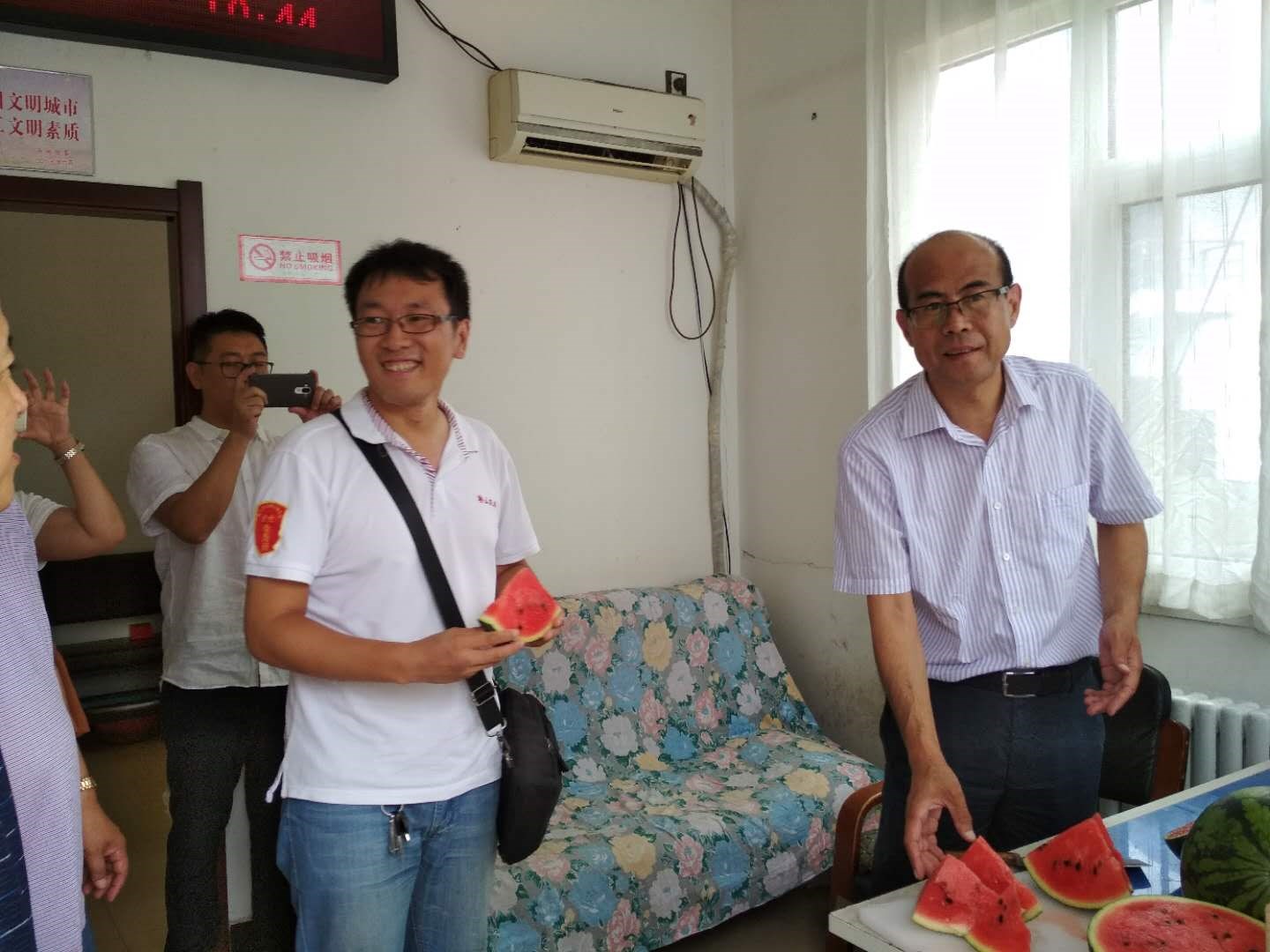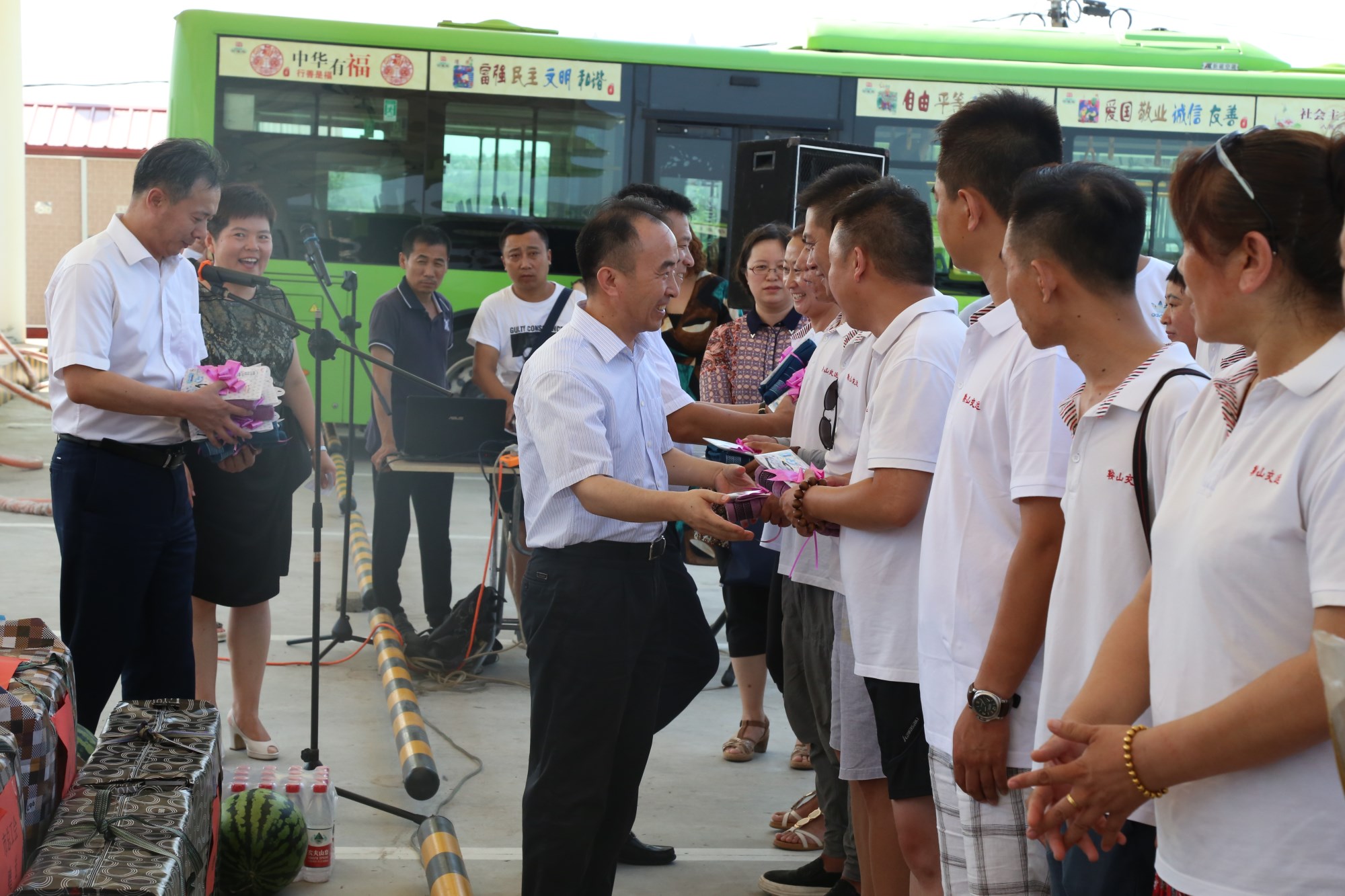 為使交運(yùn)集團(tuán)廣大一線職工度過(guò)一個(gè)安全、健康、衛(wèi)生、清涼的夏季,切實(shí)做好暑期安全生產(chǎn)、防暑降溫工作,牢固樹(shù)立“服務(wù)一線”意識(shí),入夏以來(lái),交運(yùn)集團(tuán)開(kāi)展了“情系一線職工  平安度夏送清涼”活動(dòng)。在集團(tuán)黨委書(shū)記、董事長(zhǎng)羅玉艷的帶領(lǐng)下,集團(tuán)領(lǐng)導(dǎo)班子成員和各基層營(yíng)運(yùn)公司及路隊(duì)黨政領(lǐng)導(dǎo)多次頂著酷暑到一線調(diào)度室慰問(wèn)在高溫天氣下仍堅(jiān)守在營(yíng)運(yùn)一線的職工,與他們親切交談,叮囑他們要注意身體,注意高溫下的自我調(diào)節(jié),防止高溫中暑,注意安全,杜絕疲勞作業(yè),并親手把西瓜、冰果、冰鎮(zhèn)礦泉水等防暑降溫慰問(wèn)品送到職工手中,實(shí)實(shí)在在把集團(tuán)對(duì)他們的關(guān)懷送到了每位職工心中。職工們表示,集團(tuán)為了給我們駕駛員創(chuàng)造良好的工作環(huán)境,不僅為我們送來(lái)防暑降溫物品,還為我們的調(diào)度室配備了空調(diào)、冰箱、飲水機(jī),更新了部分新能源空調(diào)電動(dòng)車(chē),使我們的工作環(huán)境越來(lái)越好,工作起來(lái)越來(lái)有干勁。在此次送清涼活動(dòng)中各基層單位根據(jù)自身實(shí)際情況,遇高溫天氣時(shí)由黨政領(lǐng)導(dǎo)親自帶隊(duì)為職工發(fā)放西瓜、冰果、礦泉水等防暑降溫慰問(wèn)品,并組織維修人員和安全管理人員對(duì)各公交場(chǎng)站、車(chē)輛安全設(shè)施、調(diào)度室衛(wèi)生等方面進(jìn)行全面檢查,竭力為堅(jiān)守在一線的公交駕駛員提供安全、舒適的工作環(huán)境。
