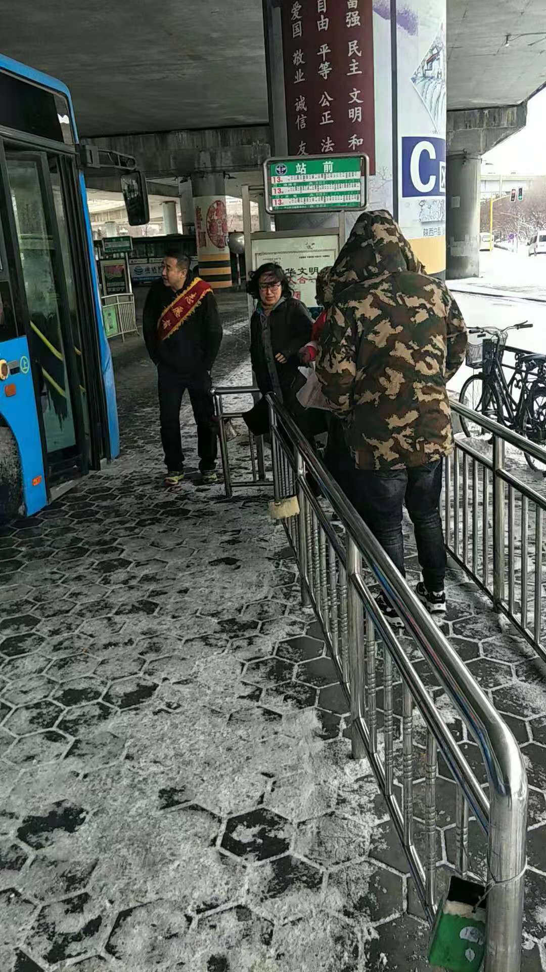 12月6日,我市迎來了2018年的第一場(chǎng)雪,為了確保市民的出行,市交運(yùn)集團(tuán)采取多項(xiàng)措施力保不滯留一名乘客。 為了確保市民安全出行,市交運(yùn)集團(tuán)提前一天進(jìn)行部署,啟動(dòng)雨雪天氣應(yīng)急預(yù)案,在收車后針對(duì)車輛安全機(jī)件進(jìn)行檢查并對(duì)駕駛員進(jìn)行冰雪道路行駛注意事項(xiàng)的教育,要求駕駛員重點(diǎn)做好車輛防寒防凍、保養(yǎng)以及安全行車等方面工作。在晚間提前做好了新能源車輛加氣、充電工作,管理人員值班進(jìn)行晝夜看護(hù),確保一早車輛出車率。
