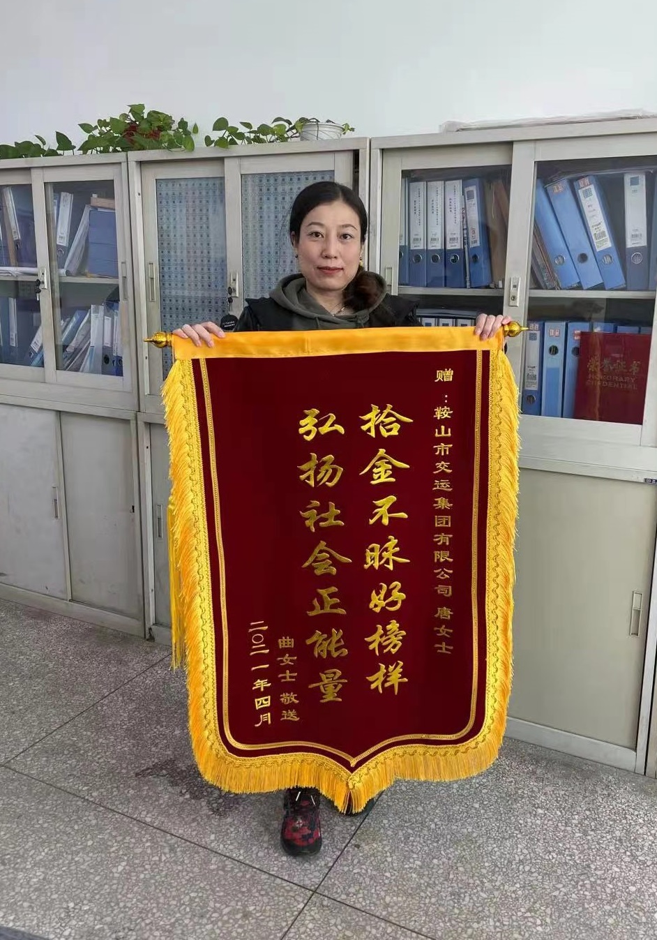 4月15日上午,市民曲女士帶刻有“拾金不昧好榜樣,弘揚社會正能量”的錦旗,送到市交運集團,感謝集團員工“唐女士”第一時間里將拾到的價值萬余元的蘋果12手機交還給她。 據(jù)失主曲女士介紹, 4月10日,她在勝利會堂參加一場培訓(xùn)會,會議結(jié)束后,才發(fā)現(xiàn)把自己載有重要資料的蘋果12手機丟失了。除了手機本身的價值以外,手機內(nèi)還存有孩子高考的各種重要資料,一時心急如焚。她報著試試看的心態(tài),用別人的手機拔打自己的號碼,沒想到立即有人接聽,并表示馬上將手機送過來。見面后,曲女士再三追問這位好心人的姓名,只了解到“好心人”姓唐,并一再表示無需感謝。曲女士再三表示誠意,“好心人”也沒有留電話,只留了微信號碼。曲女士最終通過翻看其朋友圈,發(fā)現(xiàn)“好心人”是市交運集團員工。