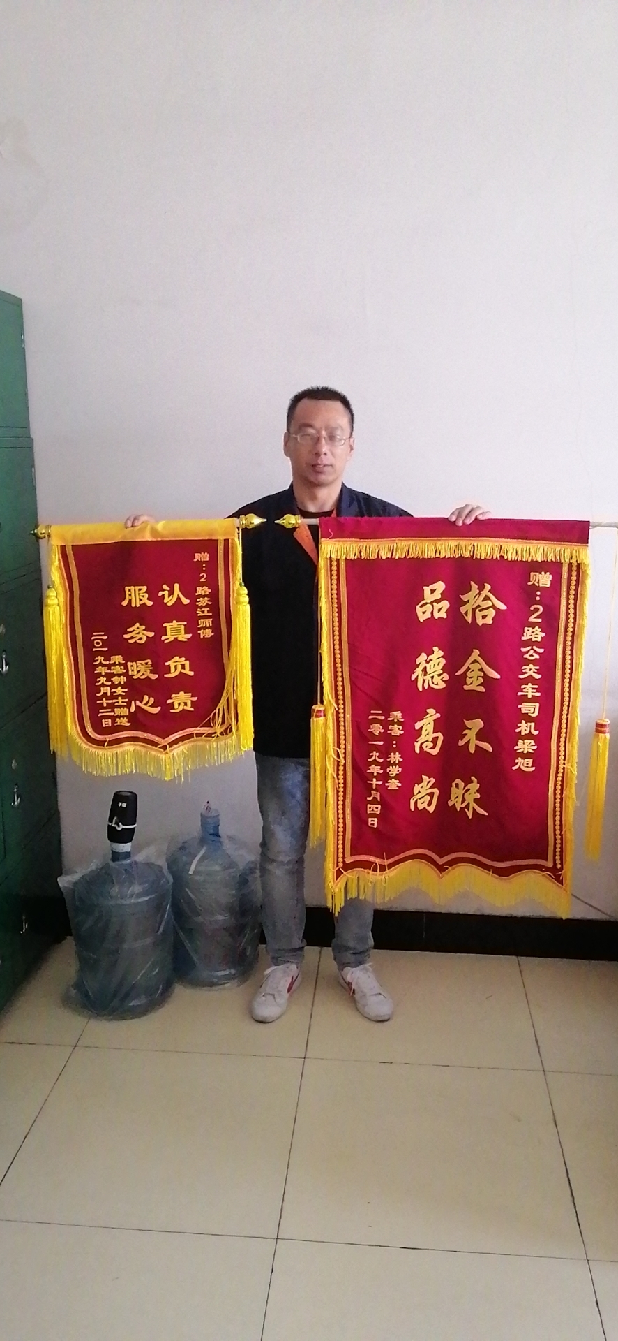 10月2日,乘客鐘女士到公交2路線師范學(xué)院調(diào)度室將寫有“認(rèn)真負(fù)責(zé)、服務(wù)暖心”的錦旗贈(zèng)與駕駛員蘇江師傅。9月12日上午,鐘女士帶孩子從師范學(xué)院乘坐2路車去站前火車站,在乘車過(guò)程中鐘女士的乘車卡由孩子拿在手中玩耍,下車時(shí)孩子卻將乘車卡塞進(jìn)后門兩個(gè)玻璃的夾縫中,一時(shí)